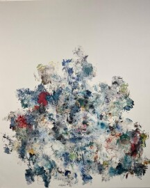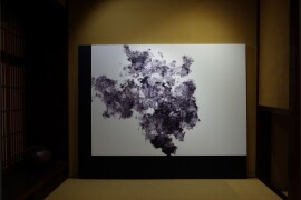 それらをキャンバスにUVプリントした物に、墨、アクリル、鉛筆等を描き重ねた作品。