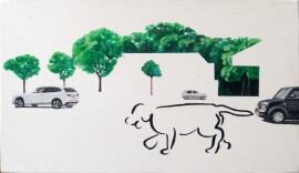 それらは黒の線描で、猫なのに横に並ぶ乗用車より大きかったりと、