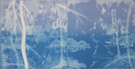 “Monotypes are pulled impressions that are painted on a plexiglass plate. The images are created through applications of ink that are rolled, brushed, and manipulated and then, are “pulled” with the use of a press.